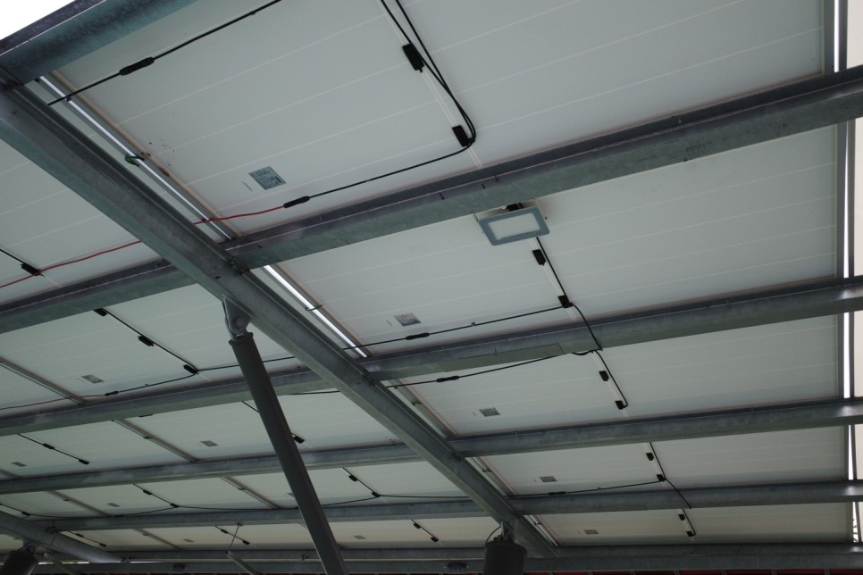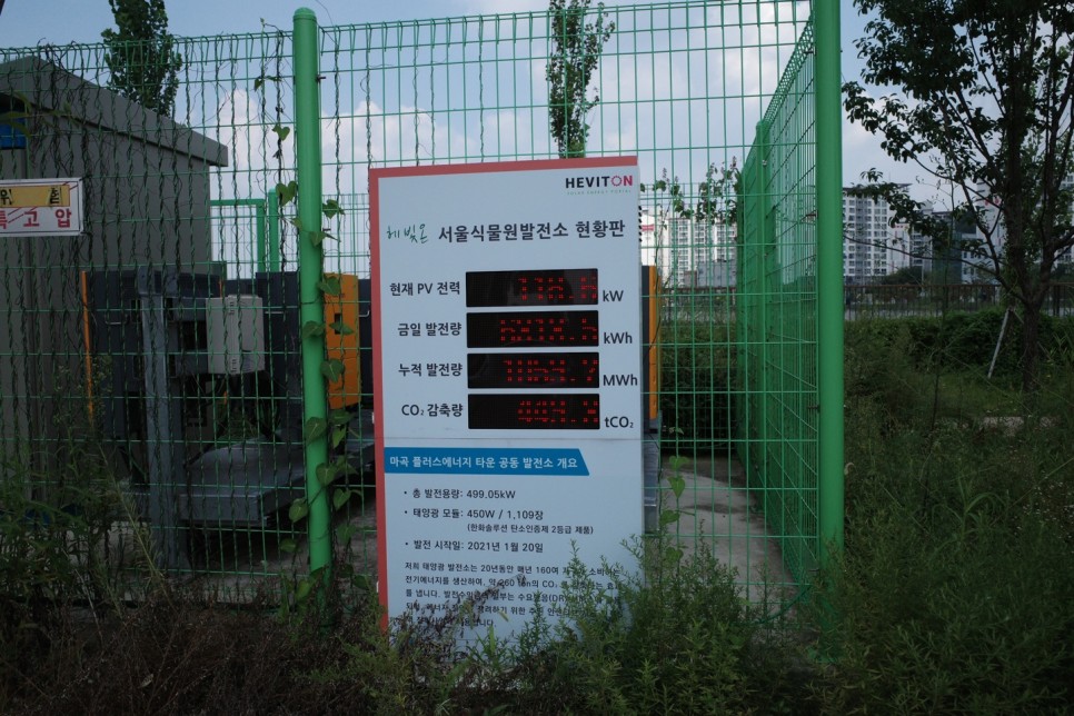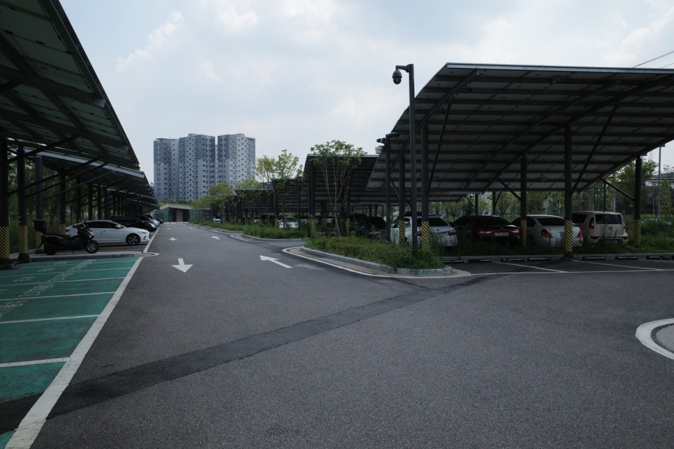 서울 식물원 주차장의 경우 야외주차장이기는 하나 사진처럼 태양광 패널 지붕이 있어서