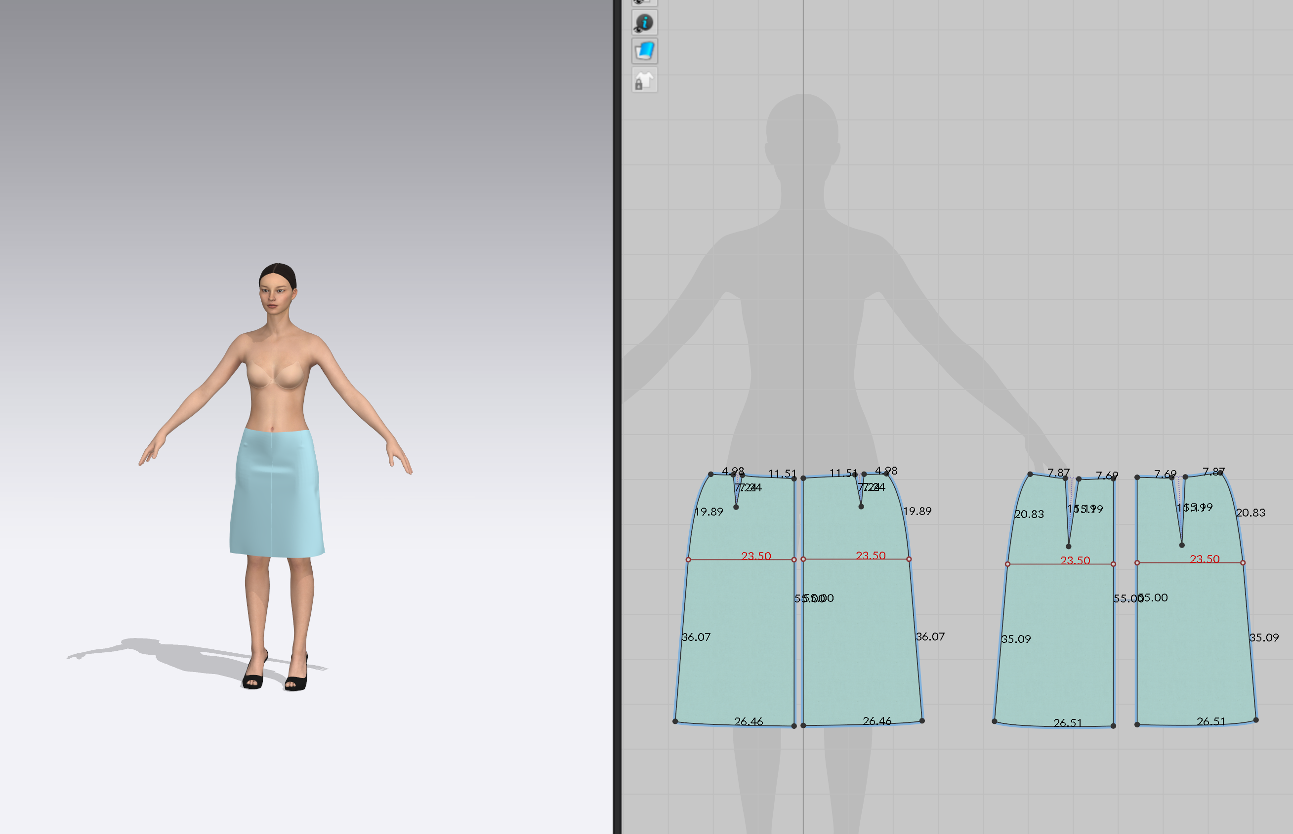 *허리둘레 - 허리 1/4 + 다트 2cm