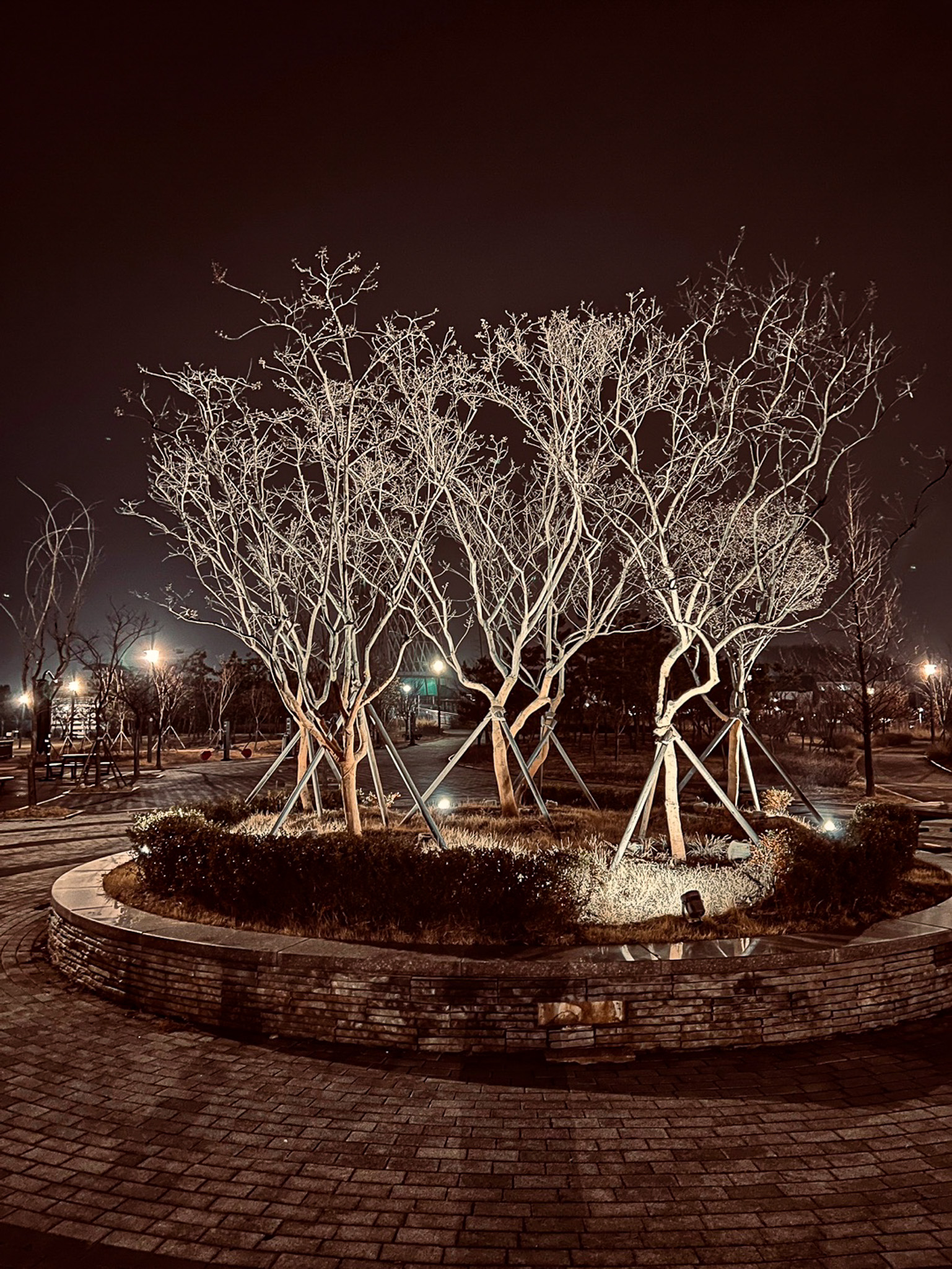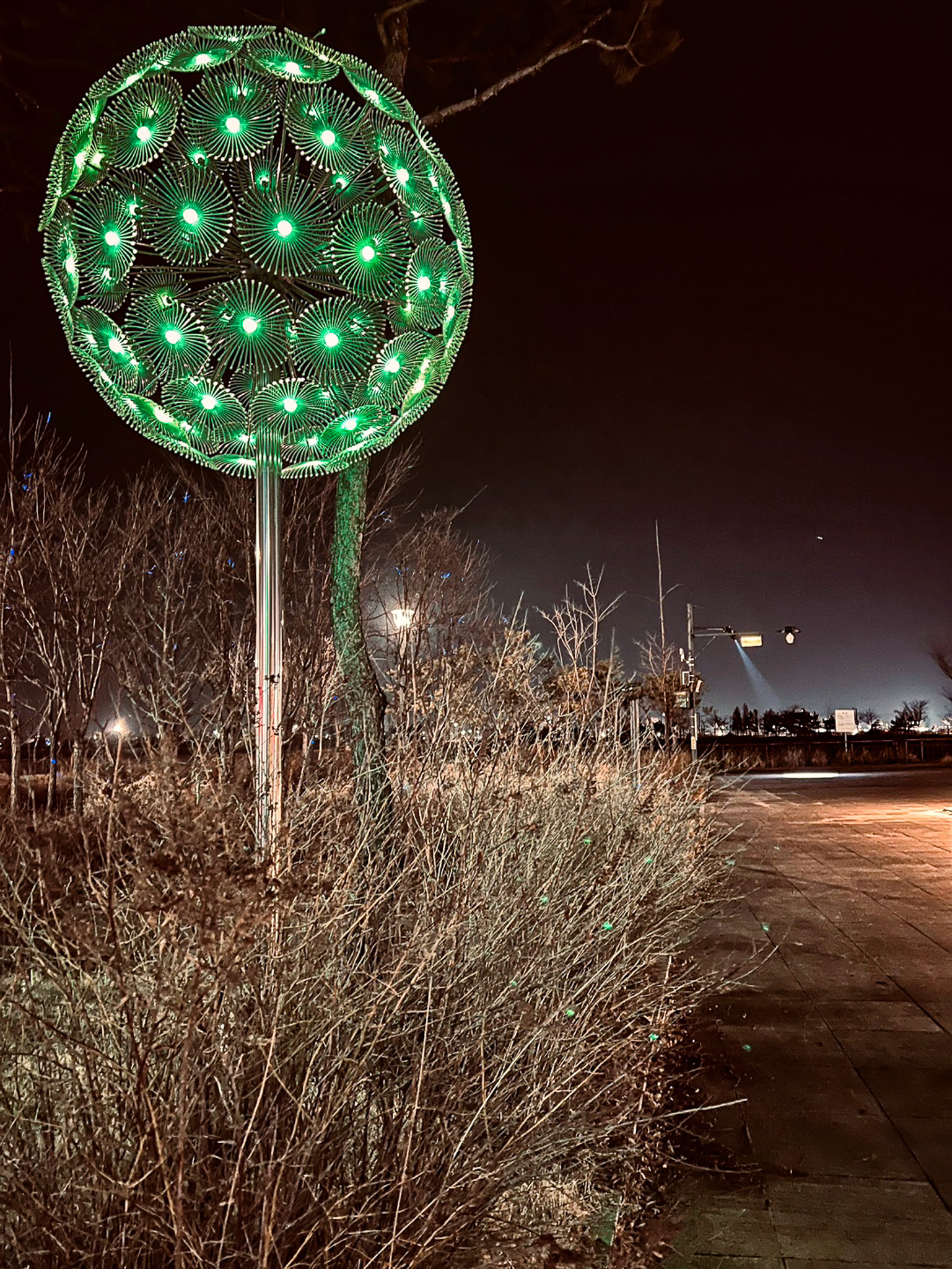 나뭇가지에도 조명을 달아 놓아서 마찬가지로 색상이 계속 변하는데